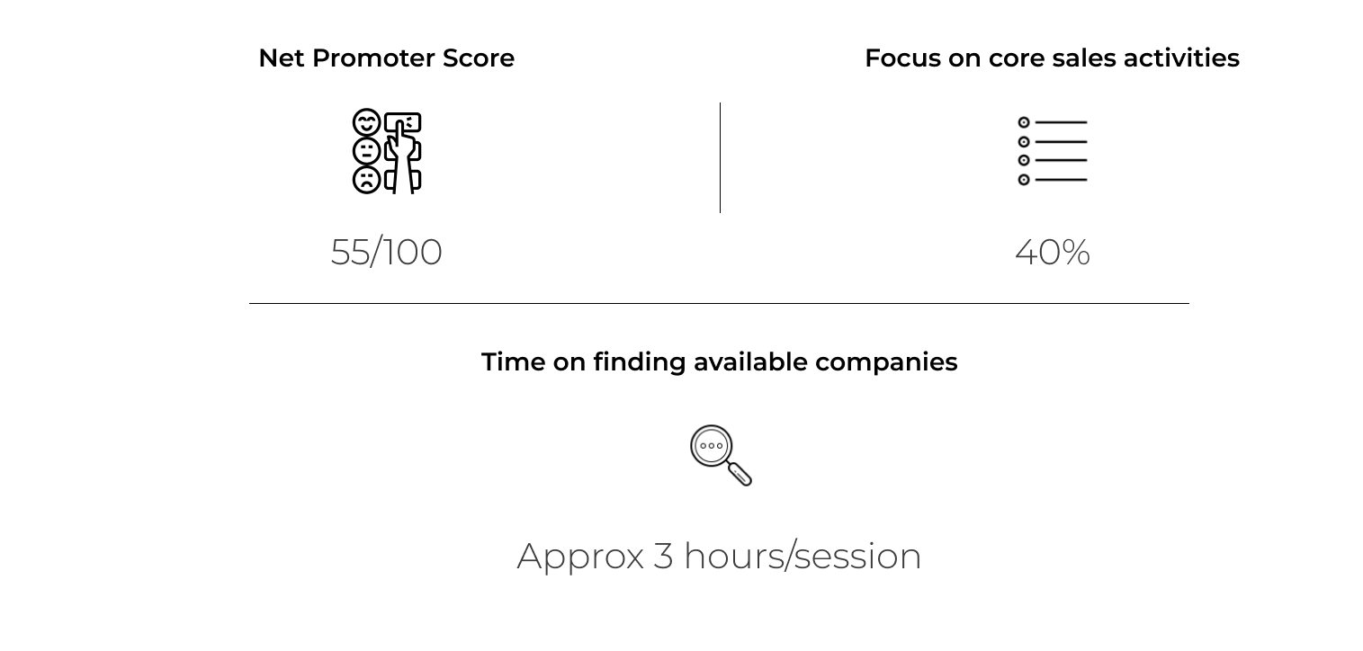 Junior account managers had a rough first year and the part where they need to find available companies and contacts was a huge pain point we decided to put lot of our efforts there.