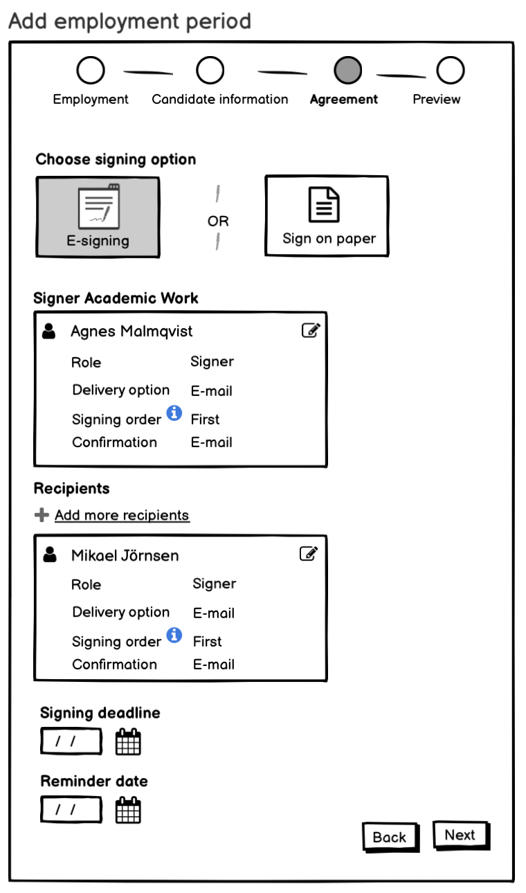 I conducted user interviews in order to get an insight of how adding an employment period and signing process looked like and to identify different scenarios.