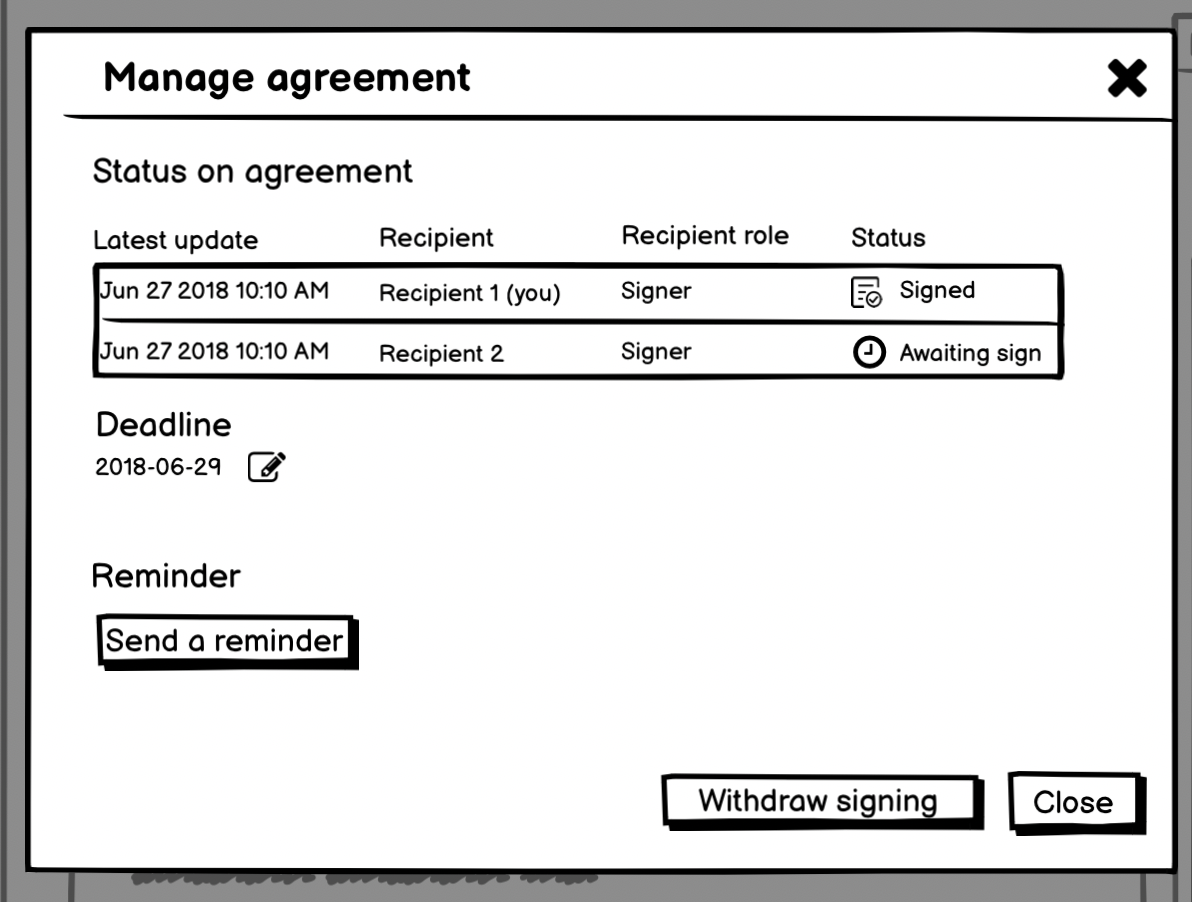 Since I knew the consultant managers wanted to make this part of the process less time-consuming to be able to focus on the areas they felt was more of value and importance, I aimed to try and make the signing flow feel easy and the managing of the contract obvious.